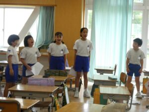 3年生 学習発表会練習 2025年9月22日 3年生, 東部っ子の1日 学習発表会の劇の練習が始まっています。自分のせりふをしっかり覚えてきて大きな声で話したり、体全体を使って話したりしている子供もいます。本番が、楽しみです。