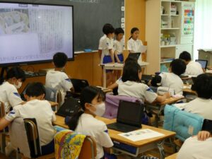 児童集会 みんなでやってみよう集会 in winter 2025年12月1日 1年生, 2年生, 3年生, 4年生, 5年生, 6年生, 東部っ子の1日 12月スタートの今日、児童集会を行いました。図書委員会の本を読みたくなる『読書クイズ』、保健委員会の歯を磨きたくなる『むし歯の劇』、企画委員会からのあいさつをしたくなる『あいさつのお知らせ』をみんなわくわくしながら見ました。「やってみよう」の思いが高まる集会でした。
