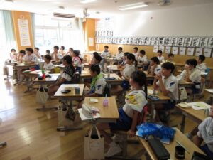 6年生 理科「大地のつくり」 2025年9月24日 6年生, 東部っ子の1日 理科「大地のつくり」の学習で、松本建材へ地層の見学に行ってきました。子供たちは、地層を見ながらスケッチしたり、地層を見て気づいたことや分かったことを書いたりしました。また、見学場所でとれた化石を見て驚いていました。