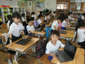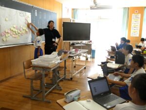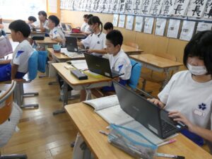 5年生 国語科 方言と共通語 2025年10月2日 5年生, 東部っ子の1日 日本各地にはその地域の言葉があります。今日は各県の「ありがとう」の方言を調べました。いろいろな言い方がありびっくりしたと同時に、他の言葉にはどんな方言があるのだろうと疑問をもったようです。