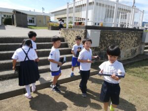 1年生 生活科 秋を見つけよう 2025年10月2日 1年生, 東部っ子の1日 ようやく涼しくなり、秋が感じられます。1年生は、秋をさがしに外へ出て、タブレット端末で「秋」と感じられるものを撮影しました。