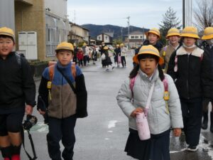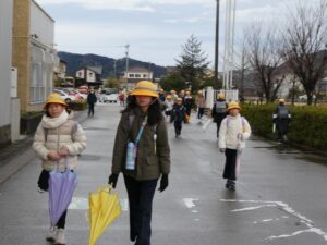 2学期最終日の登校の様子です。明日から「冬休みね」の言葉にニコニコです。