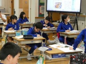 「生命の尊さ」の内容で学習をしました。消防士さんが子供の命を助けるために、自分の命を危険にさらしてまで命を救おうとする行動について話し合いました。