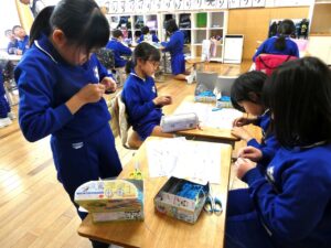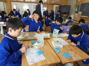 「あかりがつくつなぎ方を調べよう」の学習をしています。今日は実験の土台つくりをしました。導線を部品につなげます。次回からはいよいよ実験が始まります。