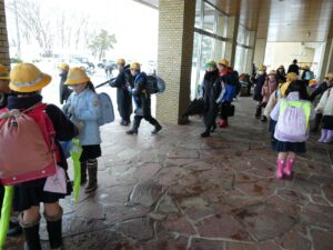 今日は、一斉下校の日です。1年から6年生までが一緒に下校していきます。