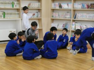 休み時間は、縄跳びで遊んでいる子供たちがたくさんいます。校内では他にもハンカチ落とし、はないちもんめなど友達と楽しく遊んでいます。
