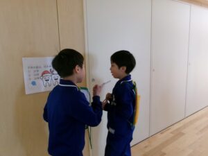 保健委員会企画 「歯みがきクイズラリー」 2026年2月17日 1年生, 2年生, 3年生, 東部っ子の1日 1~3年生が保健委員の作成した歯みがきクイズラリーに挑戦しました。「子供の歯は何本あるでしょう」というクイズを考える時には、友達の歯の数を数えるなど歯について考える時間になりました。