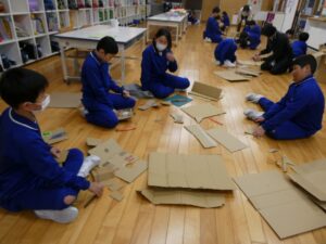 5年生は看板を作っています。学校の生活を楽しくする看板です。どこに立てて何を伝えるか…学校がにぎやかになりそうです。