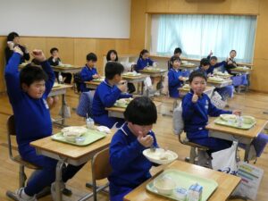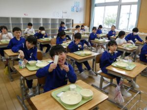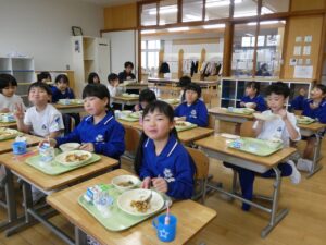 今年度最後の給食 2026年3月23日 東部っ子の1日 今日は今年度最後の給食です。みんな大好きプルコギ丼です。ぺろりと平らげていました。1年間おいしく給食をいただきました。給食を作ってくださった調理員さん、ありがとうございました。