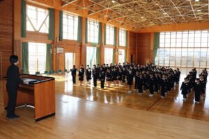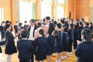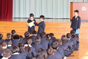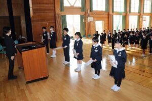 修了式 離任式 2026年3月24日 東部っ子の1日 3学期最終日。修了式と離任式を行いました。修了式では、代表児童の発表、修了証の授与、校長の話がありました。離任式では、この3月で福光東部小学校とお別れする先生方に感謝を伝えました。 令和8年度の始業式は、4月8日(水)です。元気な顔で学校に登校しましょう。
