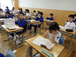 5年生 家庭科 2026年4月16日 東部っ子の1日 5年生になると、家庭科の授業がはじまります。今日は、1回目でした。はじめに、家庭科ではどのような学習をするのか確認し、さっそく「私の生活、大発見!」で家でどのような生活をしているのか振り返っていました。