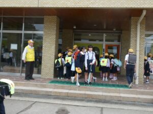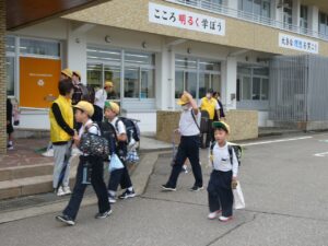 あいさつ運動 2025年10月14日 1年生, 2年生, 3年生, 4年生, 5年生, 6年生, 東部っ子の1日 今日は、青少年育成南砺市民会議福光支部の皆さんによる「あいさつ運動」の日です。3連休明けの朝でしたが、元気に登校しています。