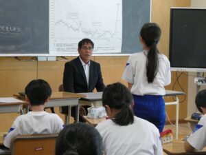 子供たちは、斎藤さんの米作りの話を聞き、日々工夫や努力をされていることに感銘を受けていました。