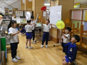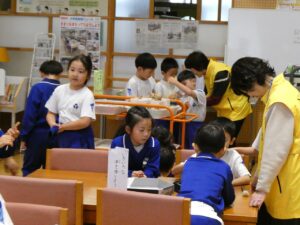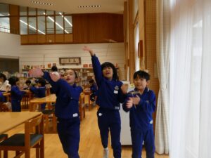 外は冷たい雨が降っていますが、図書室ではたくさんの子供たちがいろいろな遊びを楽しんでいました。