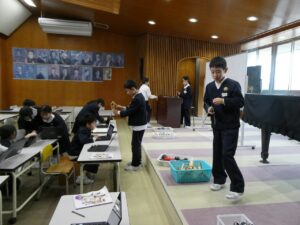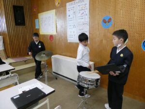 4年生 音楽 音のひびきを楽しもう 2025年12月16日 東部っ子の1日 打楽器のいろいろな音のひびきや特徴を自分で確認しました。楽器の材質や鳴らし方でひびきが変わってきます。楽しみながら調べました。