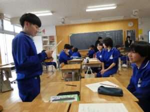 6年生 国語科(中学校の先生の授業) 2026年1月20日 6年生, 東部っ子の1日 今日は吉江中学校の河合先生、前田先生に来ていただき国語の授業をしていただきました。子供たちは中学校の先生に少し緊張しつつも、感じたことを書いたり発表したりして楽しく学習を進めていました。