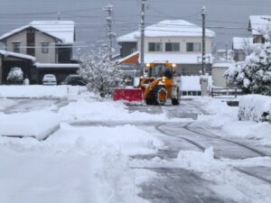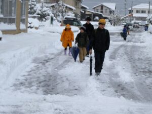 今朝は昨日より多くの雪が積もりました。朝早くから学校周りを除雪していただいています。子供たちは安心して登校できています。ありがとうございます。