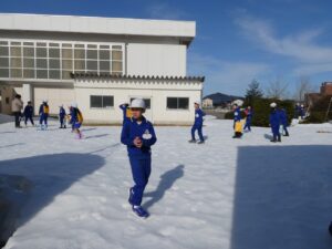 2年生 雪の上で走ったよ 2026年2月20日 東部っ子の1日 今朝はいいお天気で冷え込み、グラウンドに積もっている雪は人が乗っても走れるくらいに凍っていました。砺波地域ではこの雪の状態を「すんずら」とも言うようです。子供たちは歓声を上げて走り回り、雪の感触を楽しんでいました。
