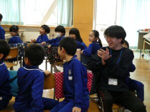 3の1 おたのしみ会 2026年2月26日 東部っ子の1日 富山大学の学生3名が「学びのアシスト」として、今年度月3回のペースで来てくださっていました。今日は、最終日ということで短い時間ですがおたのしみ会をして、別れを惜しんでいました。3名の皆さん、ありがとうございました。