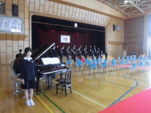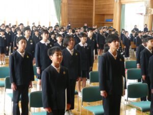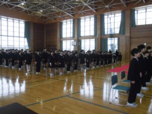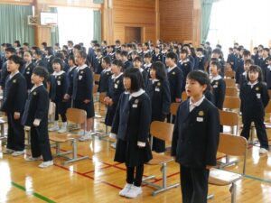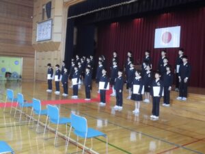 卒業式の予行を全校で行いました。寒い体育館でしたが、最後まで真剣にできました。