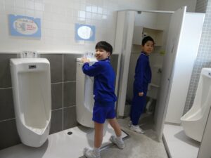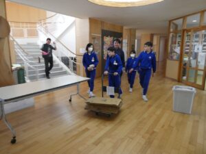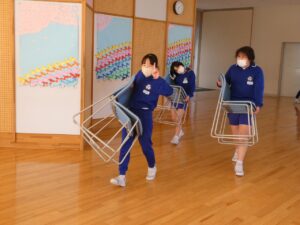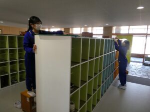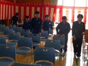 明日の卒業式に向けて、5限に5年生が式場の準備や清掃を行いました。6年生が気持ちよく卒業できるようがんばっています。