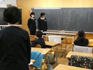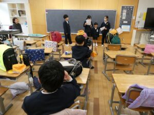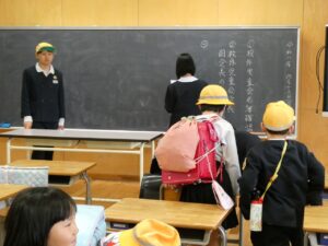 5限に新1年生も交え、校外児童会を行いました。新班長の司会で新入生の紹介や各地区の危険箇所を確認しました。
