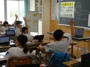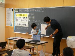 3年生は、2年生の時に習った九九を生かして九九の範囲を超えた計算の仕方を考えています。今日は、「12×4」の計算の仕方を考えました。